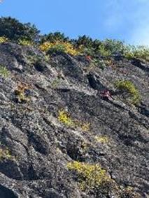 ・菩提峠での植樹山行は、あいにくの天候により自然解説ハイキングは中止となりましたが、予定どおり植樹祭を実施しました。雨の中での作業となりましたが、しっとりとした柔らかな土は苗木を迎えるにはちょうどよく、まさに木々にとっては恵みの雨でした。雨粒に濡れながら苗を植えるひとときは、自然の生命力を間近に感じる貴重な時間となりました。当日は、神奈川県勤労者山岳連盟の方2名を含む8名で作業を行い、一本一本の苗に思いを込めながら、40本以上を植樹しました。今回の活動を通して、自然保護に関わることの喜びや大切さを改めて感じました。この経験を多くの仲間にも伝え、今後の活動の輪を広げていきたいと思います。