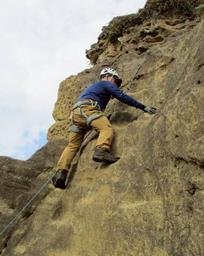 まず、岩場①にて(8:40~)ヘルメットやハーネス(含むシットハーネス)の装着方法、カラビナ・スリング・ロープの基本的な使い方を学んだ。これらの装備は命を守るための重要な道具であり、正しく扱うことの大切さを改めて実感した。