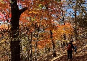 秋晴れの11月15日、経ヶ岳から仏果山までの道のりは、まさに錦秋のパノラマでした。秋の空気が景色をいっそう澄み渡らせ、眼下に広がる宮ケ瀬湖のきらめきがとても綺麗でした。
