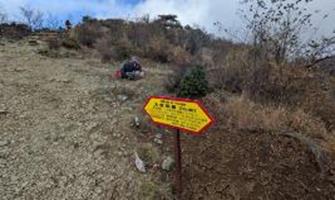 花立から10分ほど上がった辺り、そこの植生が回復することを願い観察を続けています。私たちに何をしているのか尋ねる若者がいました。私たちが荒れた箇所を観察している様子を見て、登山道の植物にも関心を持ってくれるとうれしい。そして、この自然環境を維持して、これからも楽しみたいと思っています。